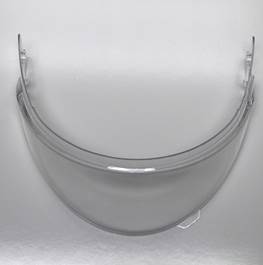 [93] The first is the shape of the viewing area. ID 964 has an almost rectangular viewing area – tallest in the middle, but with only slightly shorter ends on each arm. The HJ-17L, by contrast, has considerably shorter arm ends and narrows more steeply from the middle point at the centre of the viewing area. The viewing area also extends further back onto the arms of the face shield on the HJ-17L than in ID 964.
