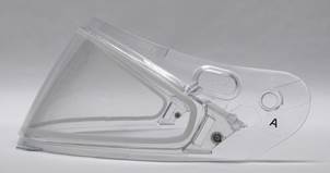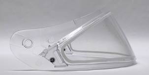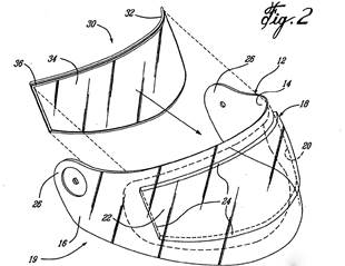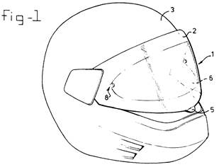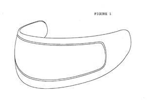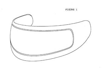 What I designed was an outwardly moulded viewing area around the full perimeter of the opening of the face shield of the helmet, the smooth contour around the entire of the perimeter so that if, when we look at the helmet, the outside is away from the person's face, so this is outwardly moulded this direction, away from the rider's face, with a smooth contoured curve around the entire visible viewing area, this was my design.