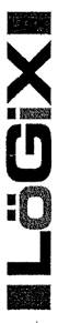 a white rectangular bar with narrow red bands at the top and bottom thereof, the white band displaying the world LOGIX, the ‘L’, ‘G’ and ‘X’ being black and the ‘O’ and ‘I’ being gray, with a red umlaut over the ‘O’ and the dot over the ‘I’ being red; the top red band displaying the letters LGX in black