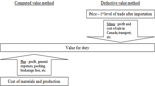 Both methods, and indeed all the methods set forth in the Act, are aimed at the same goal: determining the value of the goods at the time of their importation. What distinguishes the DVM and the CVM is their opposite starting points, as illustrated in the following diagram: