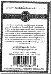 only since 2007, there is no reason to doubt his evidence that this branding began when Hidden Bench began selling wine in 2005. The label on the back of the Pinot Noir bottle that employed the words “Locust Lane”