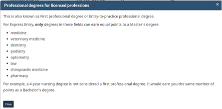 a Professional Degree – see pages 13, 18, 37, 38 and 39 wherein IRCC acknowledges the Applicant selected “Master’s or 1st prof degree.”