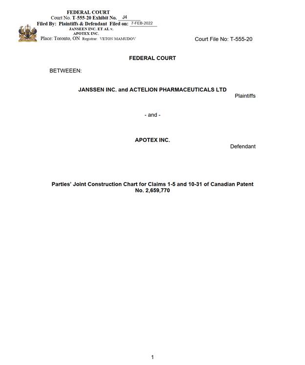 JANSSEN INC. and ACTELION PHARMACEUTICALS LTD v APOTEX INC.