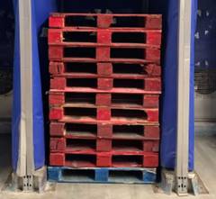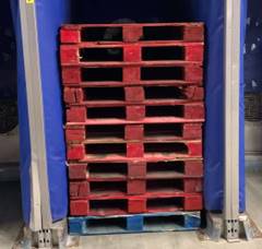 – Each tarpaulin (1) has two edges (1A, 1B), one (1A) at the upstream end and the other (1B) at the downstream end of the tunnel with respect to the direction of air flow through the products stacked on the pallet.