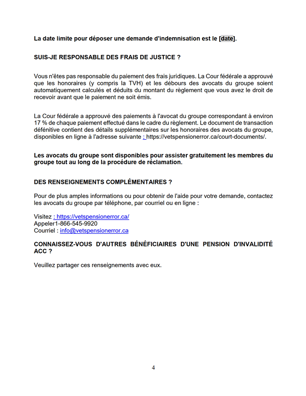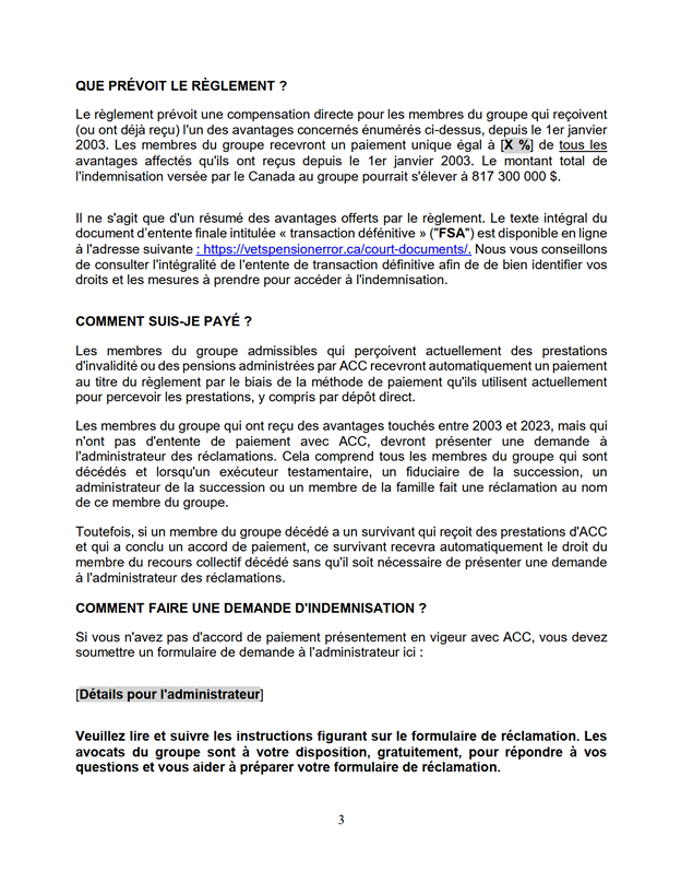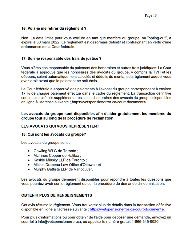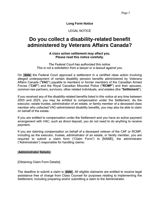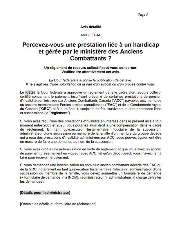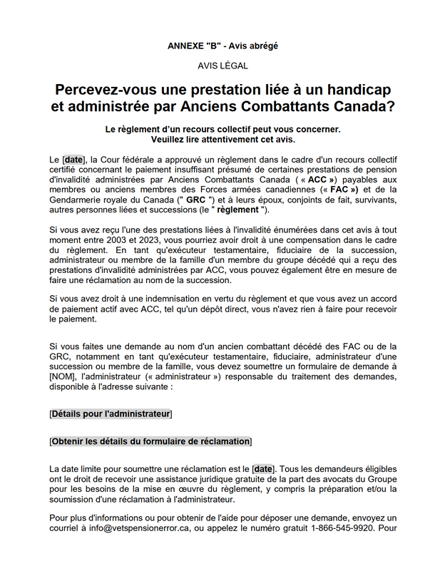 [23] On July 30, 2021, the Notice of Certification was widely published, including in major newspapers, via the VAC website, and more directly to Class Members “My VAC accounts”