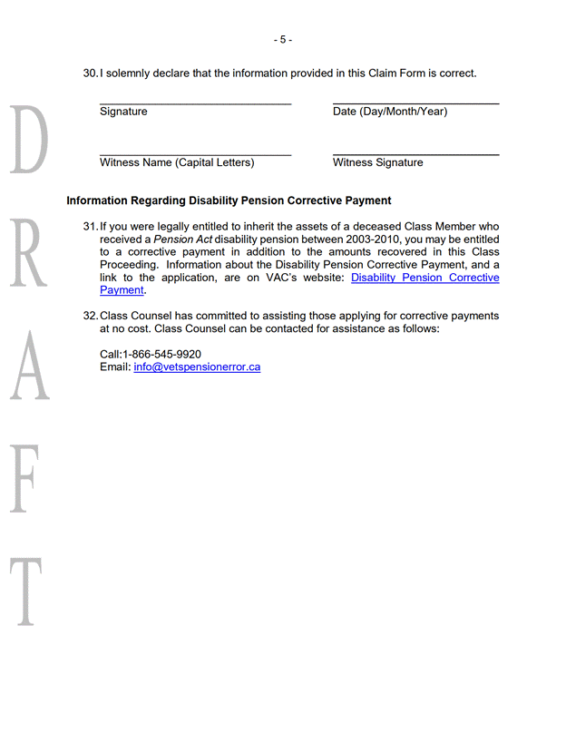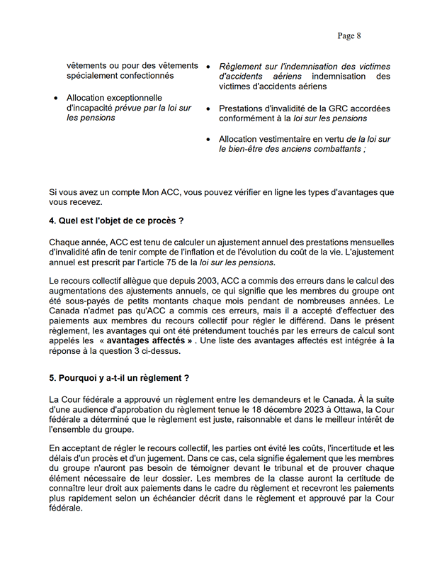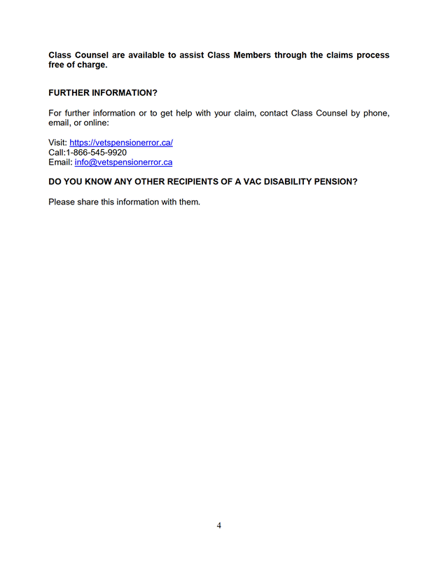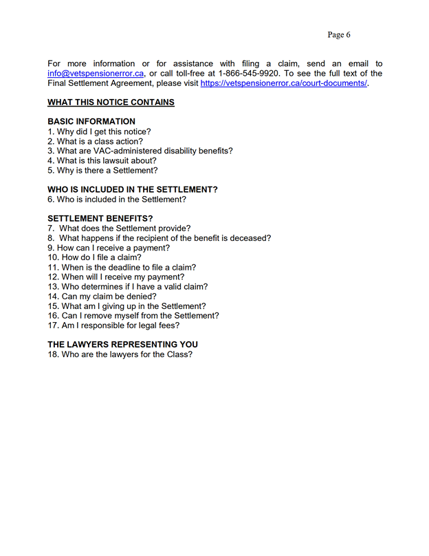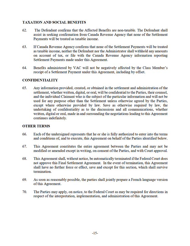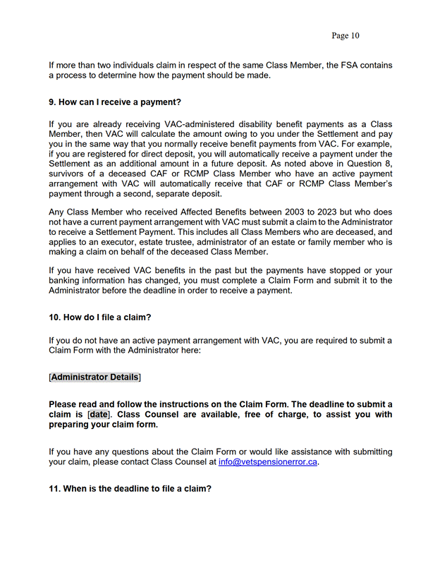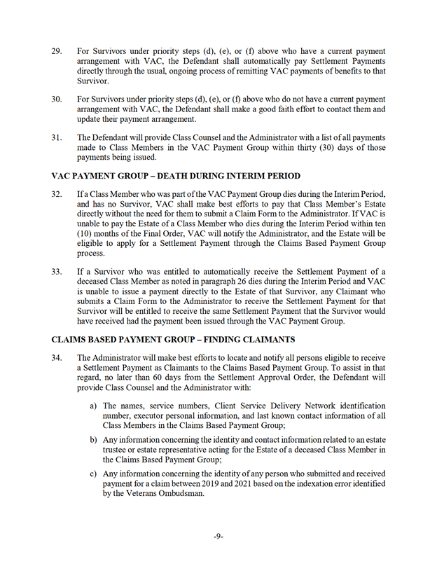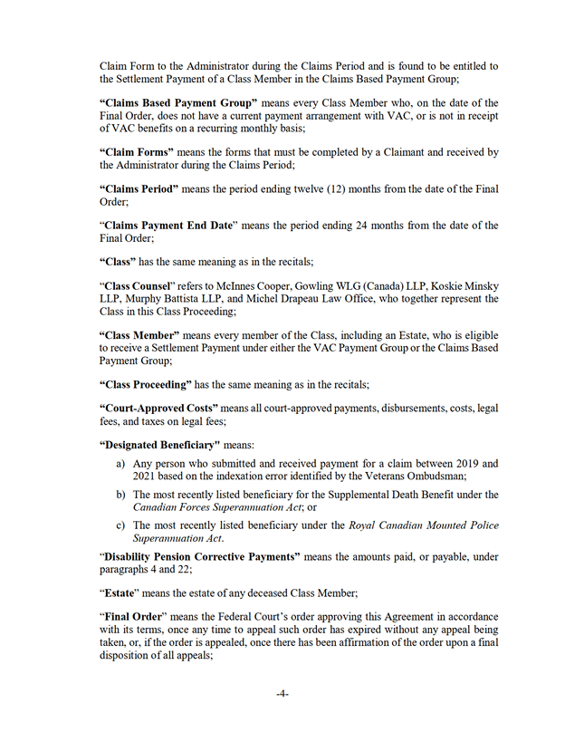 [32] Class Counsel also discovered that compassionate awards, previously listed as a separate Affected Benefit in the Certification Order, were paid as disability pensions under the Pension Act and had already been included as Affected Benefits.