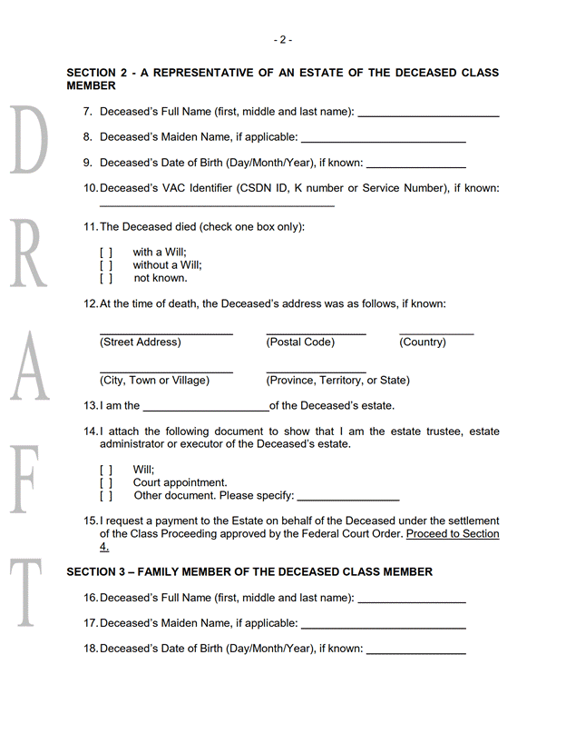 [13] David White is a Nova Scotia resident. He was a member of the RCMP from 1973 to 2002. He retired due to a medical disability resulting from an injury sustained while on duty. Mr. White has received a monthly disability pension since August 2002. Mr. White, whose late father served in the Royal Canadian Navy and was also a Class Member, provided insight regarding how simplified the FSA process is for Class Members’ estates to receive their settlement payment compared to the process that VAC established for estates to claim the Corrective Payment for the initial miscalculation. Mr. White’s personal information was also used to demonstrate the miscalculations and the impact of the settlement agreement, including a comparison between the settlement agreement and successful litigation.
