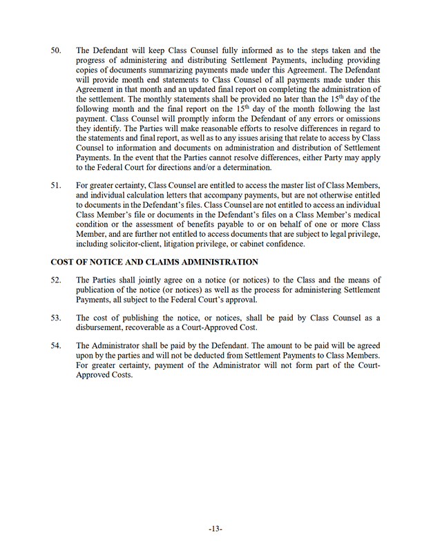 [31] Through the process of document disclosure and negotiations, Class Counsel became aware that the alleged calculation errors did not affect some benefits: