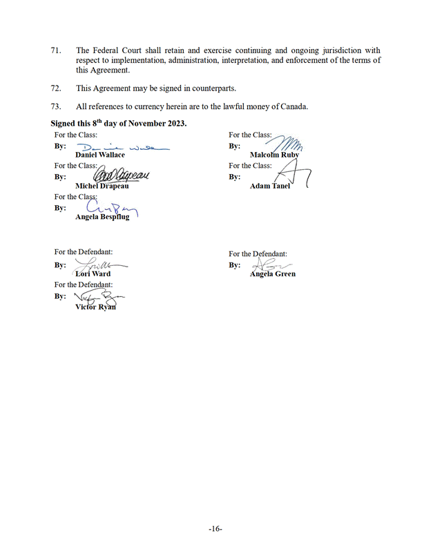 AND WHEREAS the Representative Plaintiffs and the Defendant [collectively, the Parties]) entered into a proposed agreement, the Final Settlement Agreement [Settlement Agreement], on 8 November 2023 to resolve all claims relating to or arising from this class proceeding up to and including 31 December 2023;