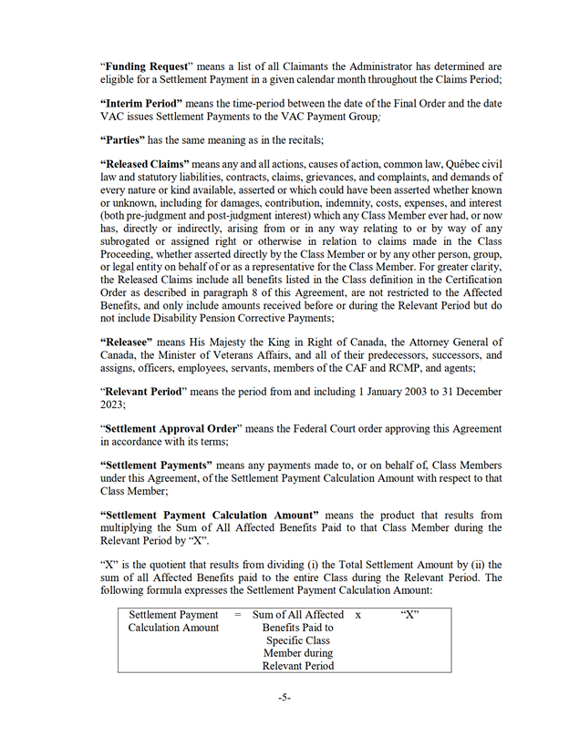 [37] Mr. MacLeod also explains that because the Relevant Period (January 1, 2003 to December 31, 2023) had not yet concluded at the time of his report, the precise amount of the Affected Benefits paid to the Class over the relevant period (as defined in the FSA and as used in the formula) cannot yet be determined.