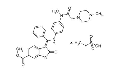 and “an inhibiting effect on various kinases, especially receptor tyrosine kinases such as VEGFR2, PDGFRα, PDGFRβ, FGFR1, FGFR3, EGFR, HER2, IGF1R and HGFR”