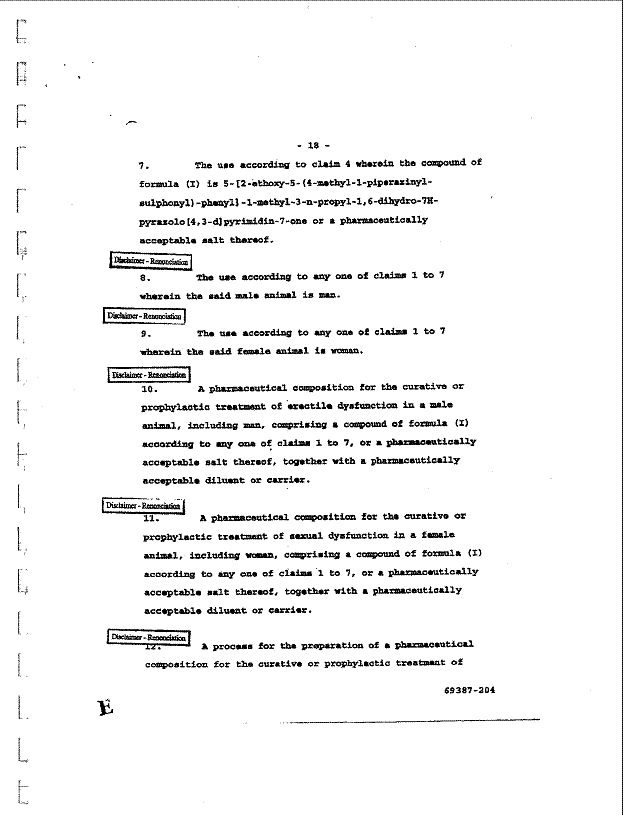 [5] Two disclaimers have been filed and recorded with respect to the ‘466 Patent. The primary effect of the two disclaimers was to limit all claims to the treatment of ED in men. The disclaimers are not relevant to this application.