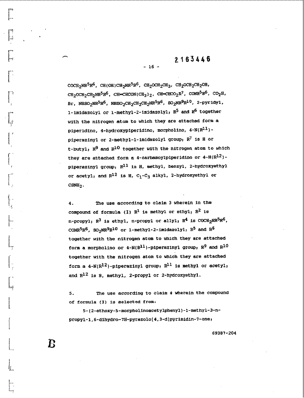 [118] Patent ‘446 does not disclose that Claim 7 and sildenafil is the only claimed compound that Pfizer found in its patient studies to induce penile erection in impotent males and is the only active compound in the invention sold commercially under the trade name Viagra. Patent ‘446 does not disclose that the many of other claims and compounds in the patent are “red herrings”, i.e. they are for claimed compounds which have been found not to work for treating erectile dysfunction.