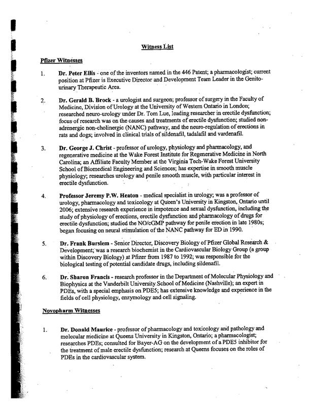 [16] Pfizer has accurately described the background of the key witnesses in a document attached hereto as “Appendix B”.