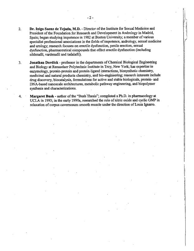 Dealing now with the second sentence: “Moreover, patient studies conducted thus far have confirmed that one of the especially preferred compounds induces penile erection in impotent males,” this appears to refer to the 350 Study. As with the description of the healthy volunteer studies, virtually no information is given regarding these studies. The disclosure of the study fails to identify the compound that was tested…