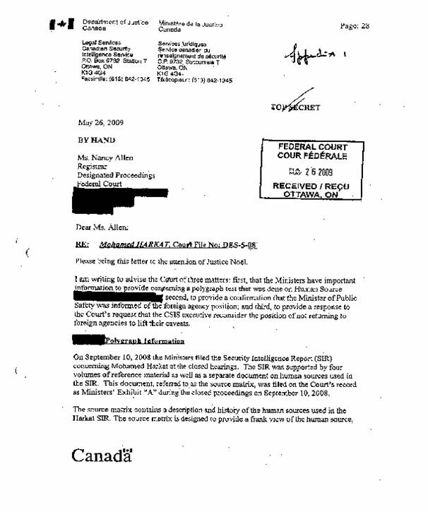 [1] This is an Order and Reasons for Order in relation to a proceeding which took place at the initiative of the Court to review the circumstances that led to a failure by the Ministers to disclose information concerning the reliability of a human source to the Court and to the special advocates (the “polygraph information”). On being made aware of the failure to disclose the polygraph information by way of letter dated May 26, 2009 (public version attached to these Reasons as Appendix 1), this Court issued an Order and Reasons for Order dated May 27, 2009 disposing of a motion, brought previously in this proceeding by the special advocates, seeking access to human source files. In the May 27, 2009 Order, this Court granted the special advocates’ motion, in part, and gave them access to one of the human source files (see Re Harkat 2009 FC 553).
