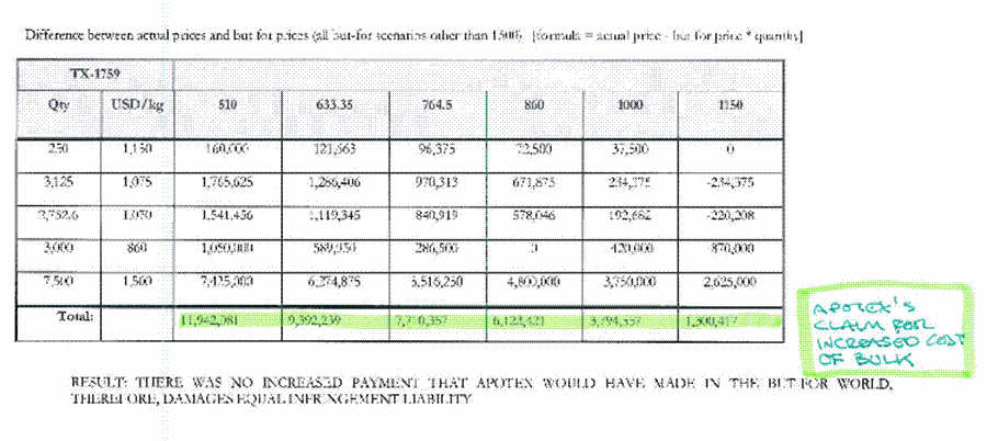 [397] A price Apotex never had to pay given that it bought infringing bulk cefaclor until 1998 at which time the legal bulk cefaclor was obtained from a third source (Lupin).