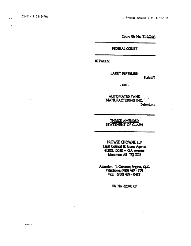 [1] This is a motion by the defendant, Automated Tank Manufacturing Inc., appealing the order of the prothonotary dated February 7, 2011, which allowed the amendment of the statement of claim.