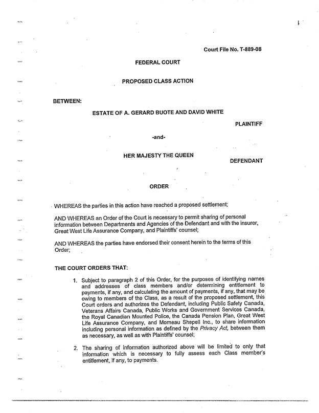 b. The Notice will be published on Class Counsel’s website, and a link to same shall be placed on the front page of the Veterans Affairs Canada’s, the RCMP’s and Great West’s websites within 10 days of the issuance of this Order;