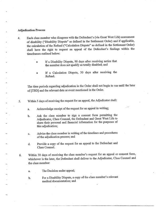 [21] If a dispute arises about whether a Zero Sum Member, including those described in paragraph 18, was disabled (the "Disability Dispute,") that Zero Sum Member shall have 90 days to appeal that finding to the adjudicator (the “Disability Appeal”) according to the Appeal Protocol attached as Annex C. Class Members who were previously assessed under the GWL-LTD Plan as not totally disabled may, if they declare they did not appeal that determination on the basis of the application of the Offset, appeal to the Adjudicator also. Great West, prior to this appeal to the Adjudicator, may reconsider whether the Class Member is totally disabled upon request and if the Class Member declares they did not appeal that determination on the basis of the application of the Offset.