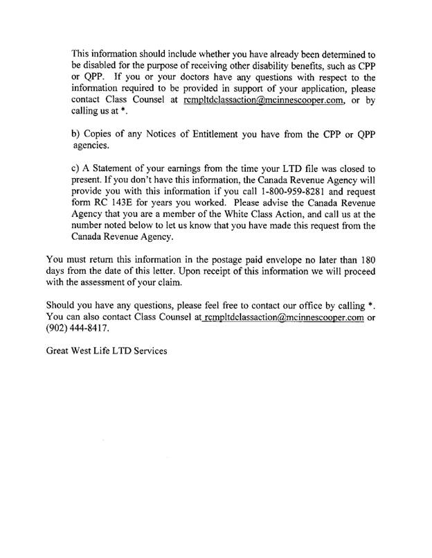 [14] The Defendant, through Great West, will issue all required T4 and T4A, and where applicable, T1198 tax forms to Class Members and the Canada Revenue Agency (“CRA”).