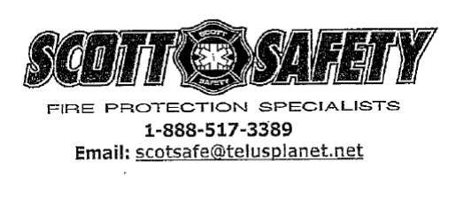 [12] M. Stark a enregistré son entreprise en Alberta le 24 mai 1995, sous l’appellation « Scott Safety Supply & Services », en la décrivant comme une entreprise de [traduction] « vente et entretien d’extincteurs d’incendie ». En décembre 1995, la perluète dans le nom commercial a été supprimée, et l’entreprise était simplement appelée « Scott Safety Supply Services ». Un avis publié dans un journal local en date du 13 décembre 1995 montre que l’entreprise utilise la marque de commerce descriptive ci‑dessous.