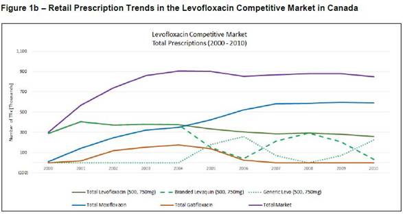 [11] Janssen Inc. vend et fait autrement le commerce au Canada de produits contenant de la lévofloxacine depuis 1998 environ. Ces produits ont été offerts, à différents moments, sous forme de comprimés de divers dosages, soit de 250 mg, de 500 mg et de 750 mg, sous le nom LEVAQUIN.
