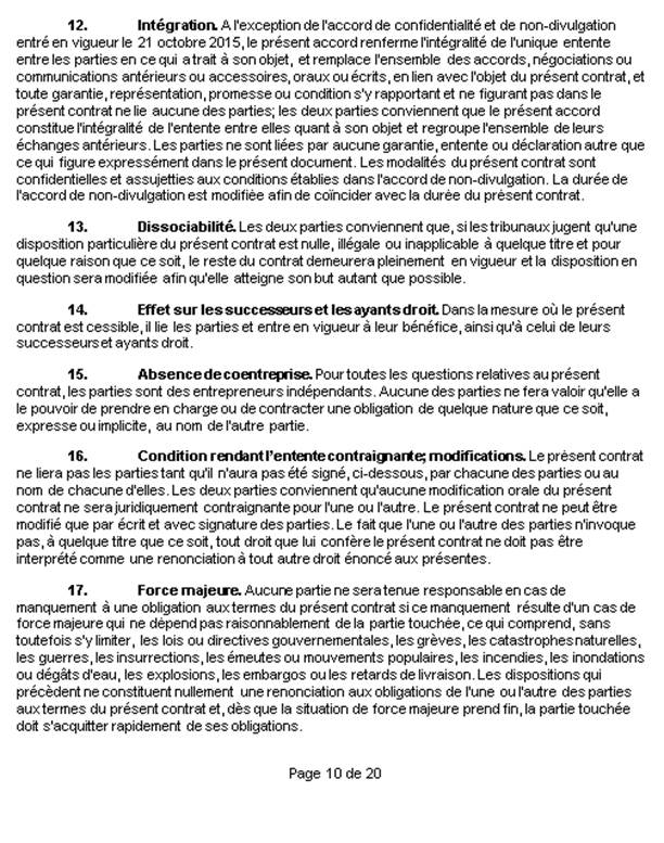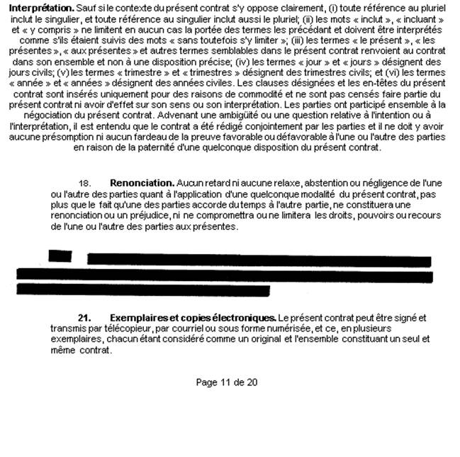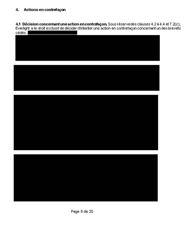 3.  Le contrat de cession intitulé [traduction] « Contrat no A03 16070001 Service juridique d’Everlight »
