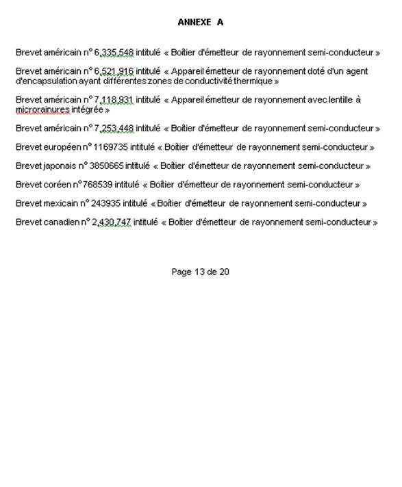 (la cession) est radié des registres du Bureau des brevets en ce qui concerne le brevet, et sera remplacé par la cession expurgée jointe au présent jugement (annexe A).