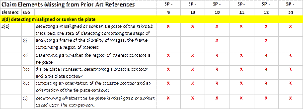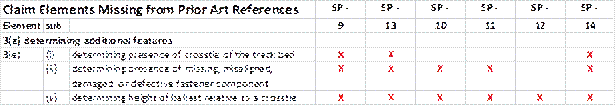 Tetra affirme que, dans le contexte des brevets 082 et 249, les régions d’intérêt sont utilisées pour souligner les zones horizontales et verticales afin de détecter des caractéristiques précises. À l’inverse, le système 3DTAS établit les caractéristiques de la selle de rail en traitant l’ensemble de la carte altimétrique pour localiser les crampons et les trous, puis en choisissant la selle de rail la mieux connue en utilisant un modèle de crampons et de trous correspondants. Une fois définie, la zone de délimitation est utilisée pour définir d’autres zones qui sont tenues d’exécuter des calculs altimétriques. Toutefois, les calculs qui établissent les différences en altitude s’appuient sur l’emplacement des selles de rail ou des attaches, et n’exigent pas de connaissance de la zone de délimitation. Par conséquent, Tetra conclut que le 3DTAS n’utilise pas une région d’intérêt pour restreindre la recherche de caractéristiques dans la carte altimétrique en 3D, verticalement ou spatialement.