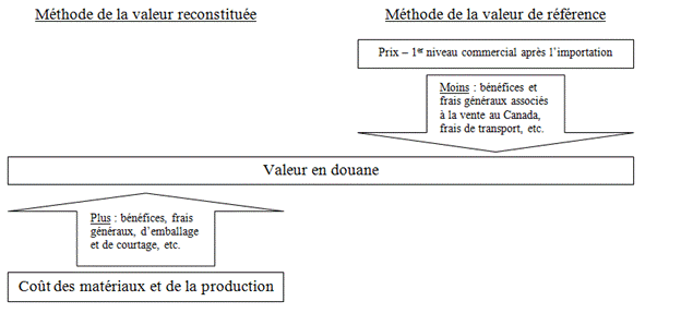 [10]  Les deux méthodes, et d’ailleurs toutes les méthodes exposées dans la Loi, ont le même objectif : l’appréciation de la valeur des marchandises au moment de leur importation. Ce qui distingue la MVDR de la MVR, ce sont leurs points de départ opposés, comme l’illustre le diagramme suivant :