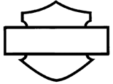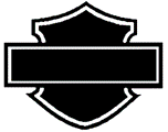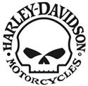se trouve un crâne stylisé sans mâchoire, avec les mots HARLEY‑DAVIDSON sous forme d’arc au‑dessus du crâne, et le mot MOTORCYCLES sous forme d’arc en dessous.]