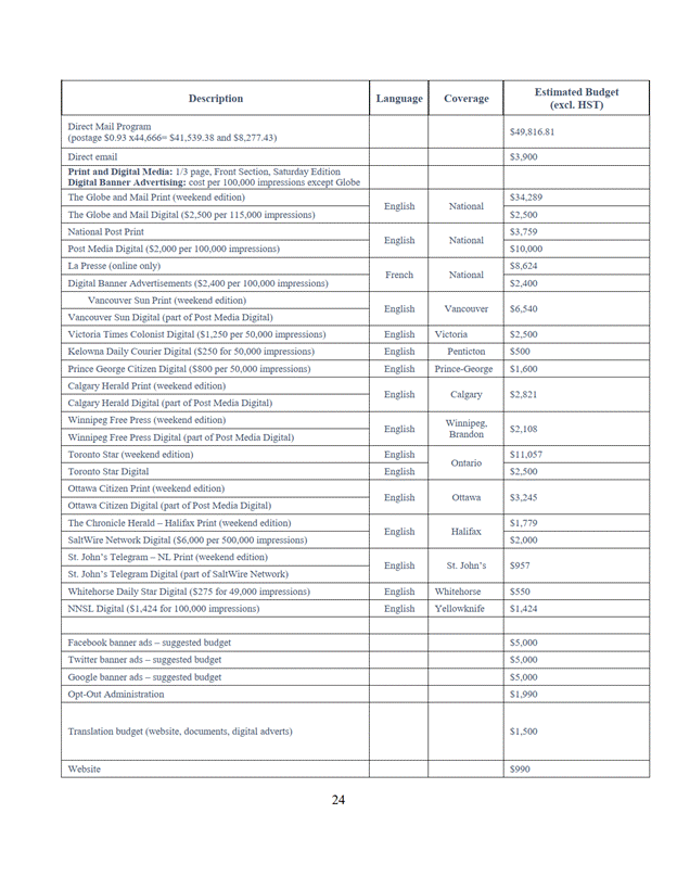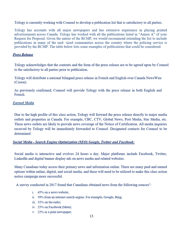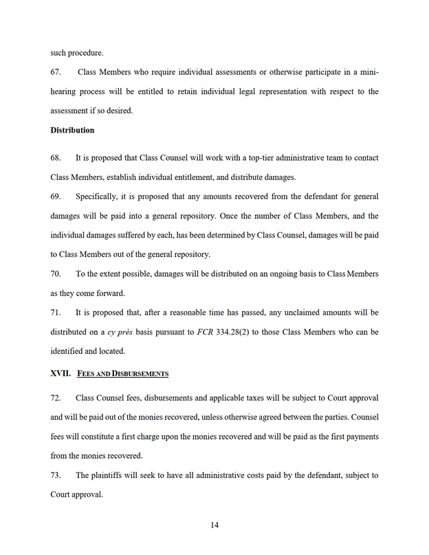 14. Le programme de communication satisfait aux exigences des articles 334.34, 334.35, 334.36 et 334.37 des Règles des Cours fédérales. Il informe de façon juste et raisonnable les personnes ayant droit à l'avis d'autorisation de l'instance.