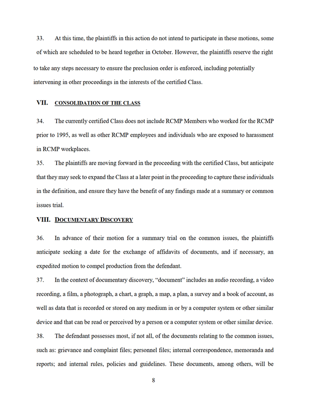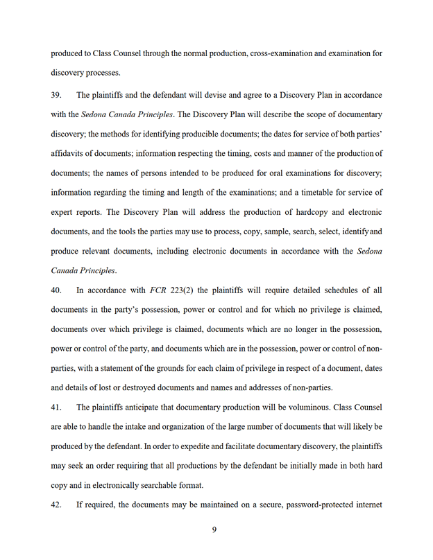 8. La Cour approuve le plan de poursuite de l'instance des demandeurs joint à l'annexe « A ».