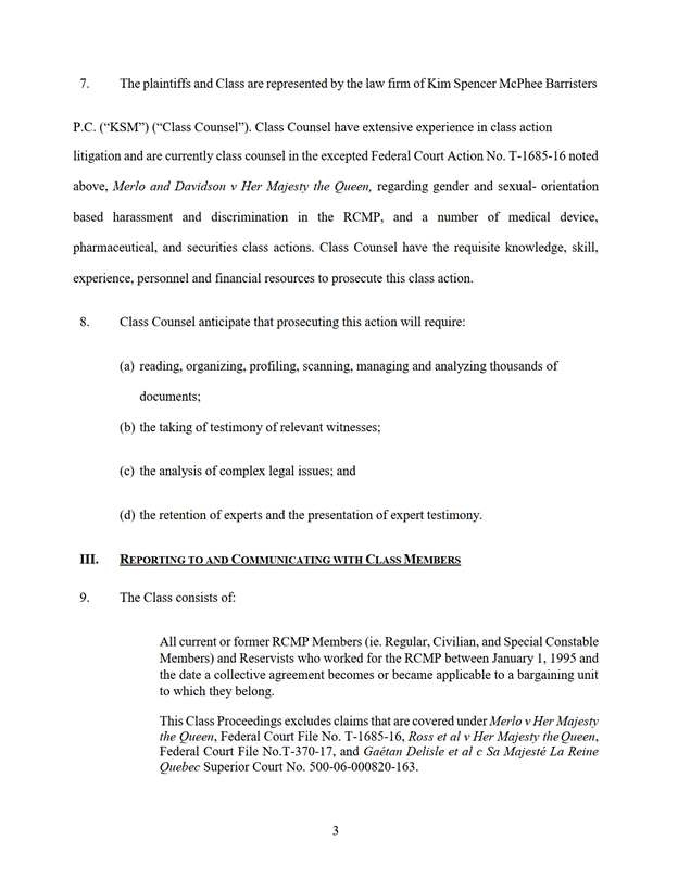 Le présent recours collectif exclut les revendications dans les instances Merlo c. Sa Majesté la Reine, dossier de la Cour fédérale no T 1685 16, Ross et al. c. Sa Majesté la Reine, dossier de la Cour fédérale no T 370 17, et Gaétan Delisle et al. c. Sa Majesté le Roi, dossier de la Cour supérieure du Québec no 500 06 000820 163.
