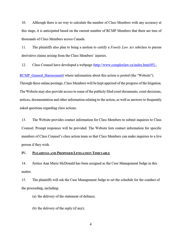 4. La nature des réclamations présentées au nom du groupe est la négligence systémique. Plus précisément, les représentants demandeurs font valoir qu'il y avait à la GRC une culture d'intimidation et de harcèlement généralisée qui a touché tous les employés de la GRC. Ils font valoir qu'en permettant que cette culture se manifeste et se répande au sein de l'organisation depuis les plus hauts échelons de la hiérarchie, la GRC a manqué à ses obligations de fournir aux membres du groupe un milieu de travail exempt d'intimidation et de harcèlement, notamment ceux fondés sur le sexe, la race, l'ethnie ou la religion. Les représentants demandeurs affirment que le défendeur, Sa Majesté le Roi, est responsable du fait d'autrui des actions des mandataires et employés de la GRC à cet égard.