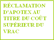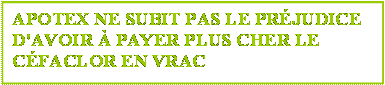 [397] Prix qu’Apotex n’a jamais eu à payer puisqu’elle a acheté du céfaclor en vrac contrefaisant jusqu’en 1998, après quoi elle a obtenu le céfaclor en vrac licite d’un tiers (Lupin).