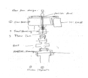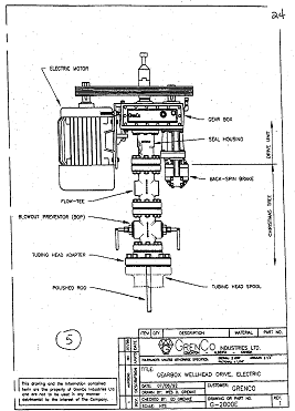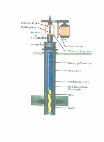 [2] Le brevet 937 revendique un dispositif conçu pour régler un problème de fuite des boîtes à garniture sur des pompes rotatives à rotor hélicoïdal excentré. Ce problème de fuite inquiète les producteurs de pétrole lourd depuis le début des années 1980. Un exemple d’une pompe rotative à rotor hélicoïdal excentré avec la boîte à garniture est illustré ci-dessous :