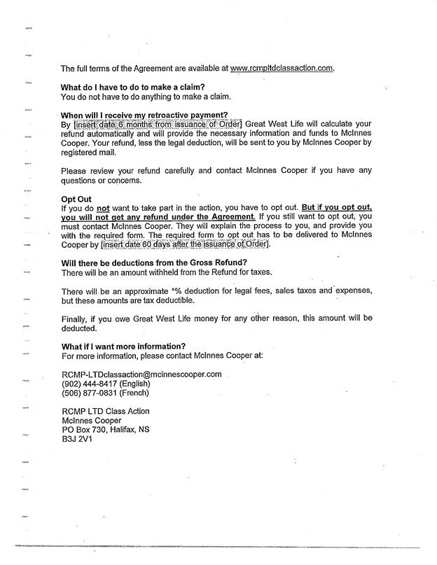 b. L’avis sera publié sur le site Web des avocats du groupe, et un lien menant à l’avis sera placé sur la page d’accueil des sites Web d’Anciens combattants Canada, de la GRC et de Great West dans les 10 jours suivant le prononcé de la présente ordonnance;