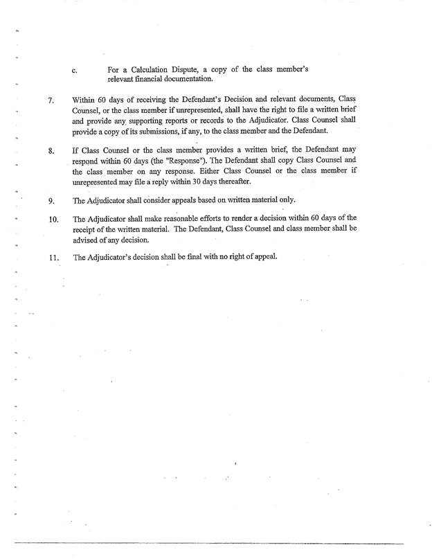 [22] Si un différend survient au sujet du calcul du remboursement (le différend quant au calcul), le membre du groupe disposera de 30 jours après la réception du remboursement pour aviser l’arbitre du différend (l’appel relativement au calcul) et pour lui transmettre tout dossier ou rapport à l’appui, selon les modalités prévues au protocole d’appel joint à la présente ordonnance à l’annexe C.